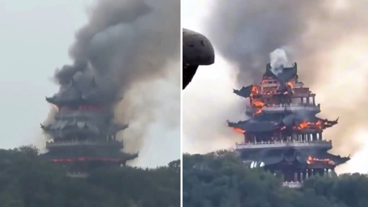 Çin’in Jiangsu eyaletindeki 1500 yıllık Yongqing Tapınağı’nın köşkünde yangın çıktığı bildirildi.