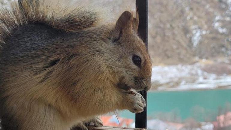 Ayhan, “Bahçeli bir evim var. Bu sene ağaçlarda don nedeniyle meyve veriminde azalma oldu. Kış çok zor geçti. Sadece sincaplar değil; çakallar, kuşlar, serçeler, kargalar da mağdur durumda. Bir gün evde otururken bir sincap geldi. Zamanla onunla arkadaş olduk. Şu anda birlikte zaman geçiriyoruz. Birbirimizi anlıyoruz. Sincap yemeğini almaya geldiğinde ben de onu bekliyorum, güzel vakit geçiriyoruz” şeklinde konuştu.