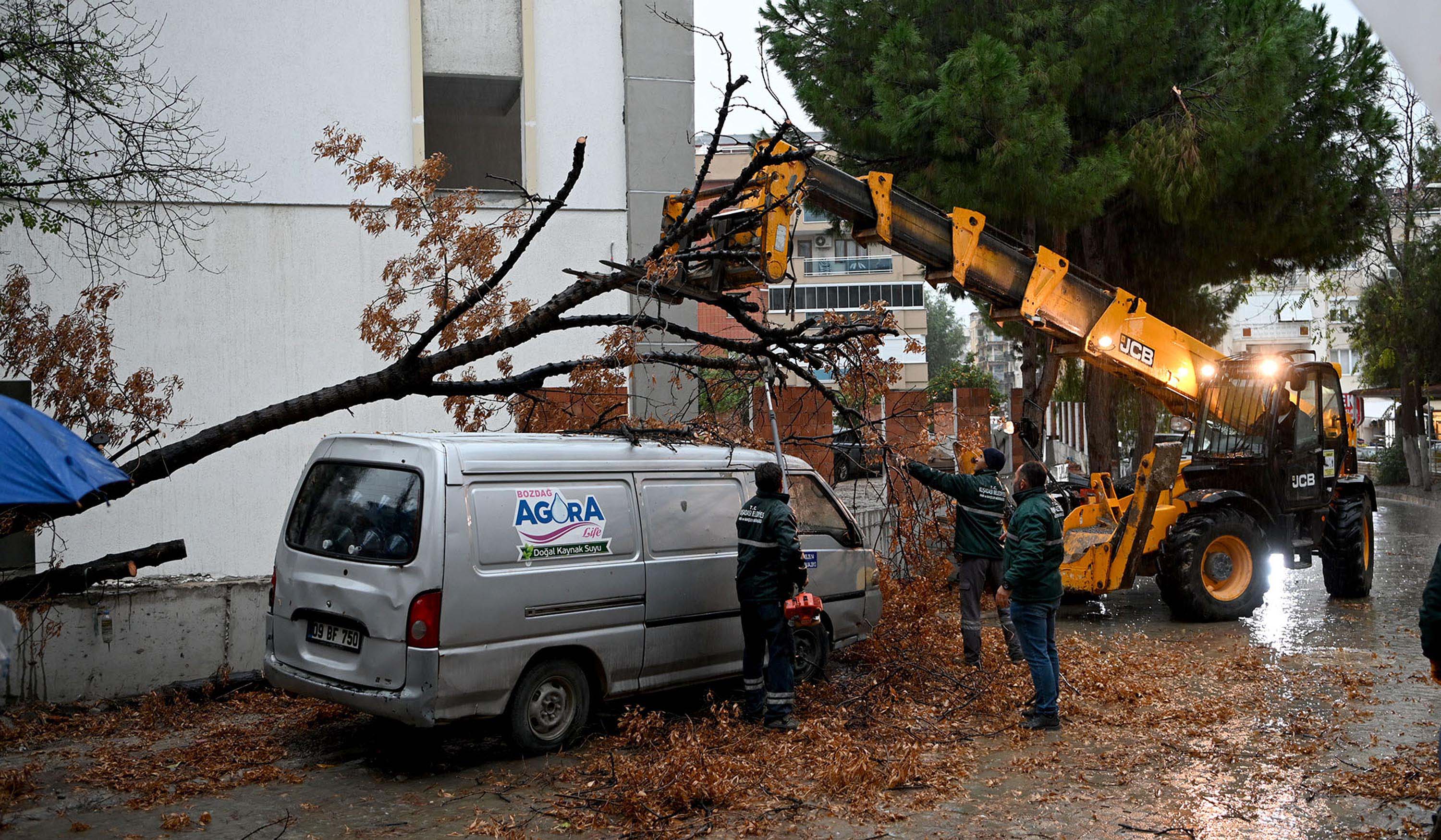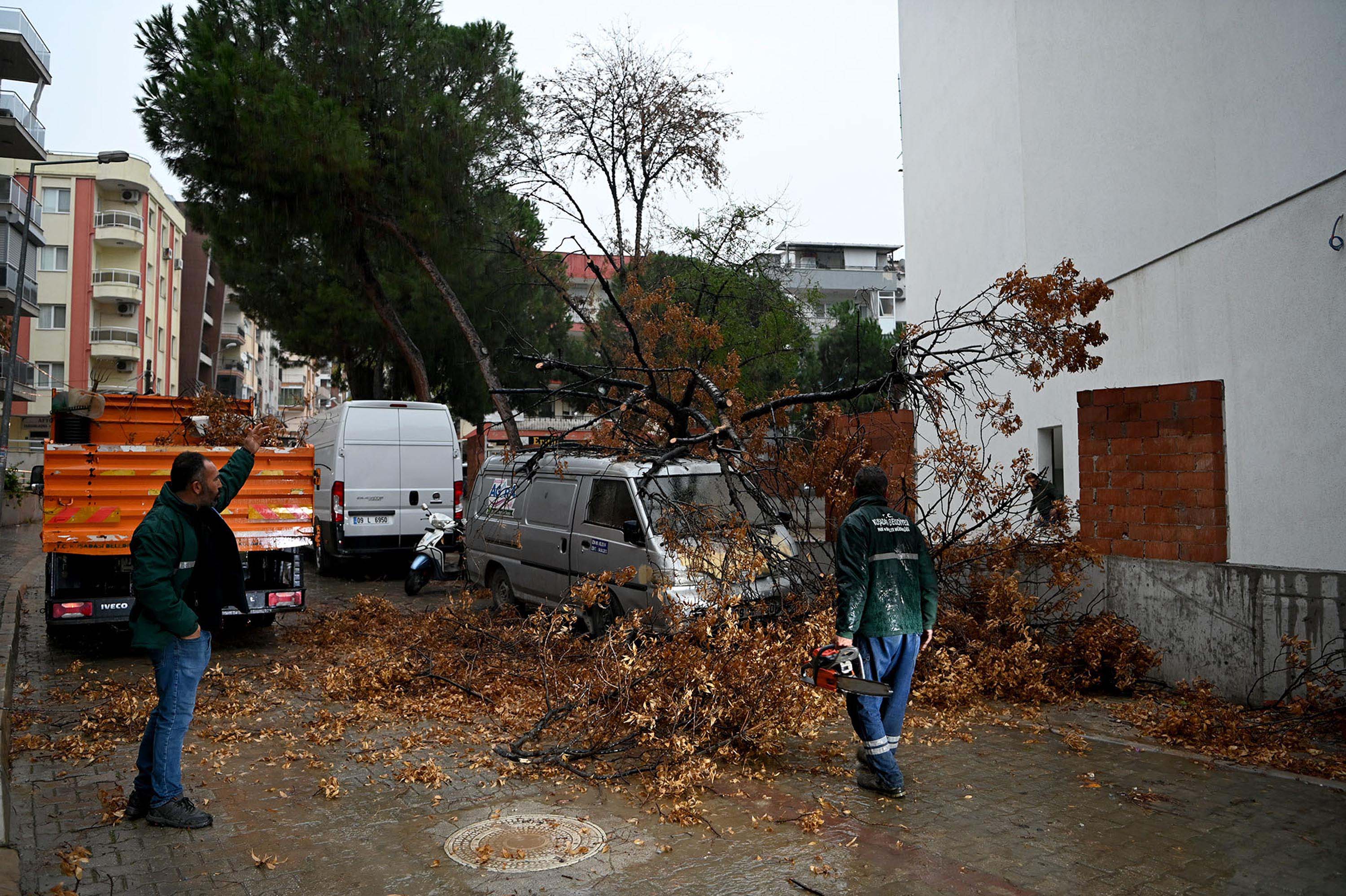 Kuvvetli rüzgardan dolayı bazı mahallelerde yollara ve araçların üzerine devrilen ağaçlar belediye ekipleri tarafından kaldırıldı.
